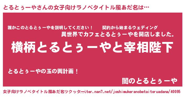| 男性向けラノベタイトル風あだ名 | 『とるとぅーやに滅ぼされるだけの簡単なお仕事です』 |