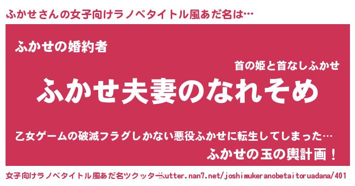 | 料理風あだ名 | 『ふかせのトマト煮』 |