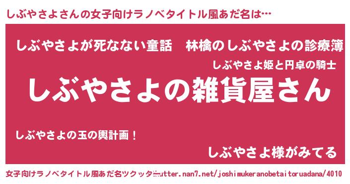 | 意味不明あだ名 | 『しぶやさよフォーエバー』 |