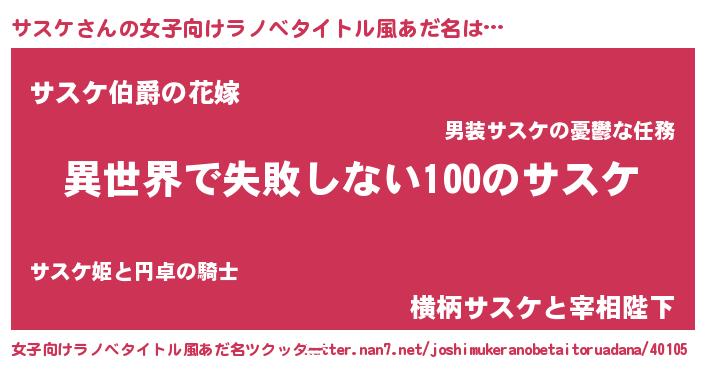 | 男性向けラノベタイトル風あだ名 | 『サスケという概念が存在しない退屈な世界 』 |