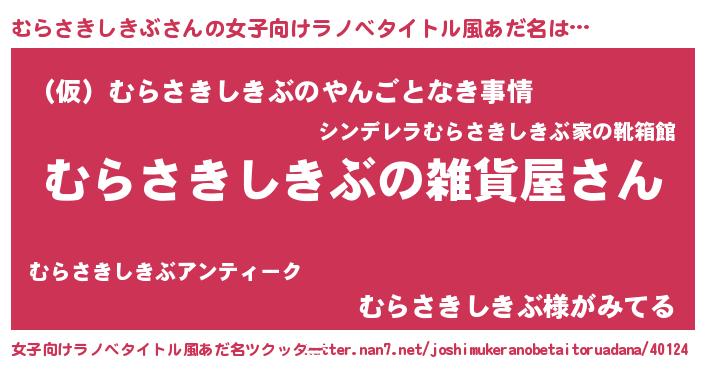 | 男性向けラノベタイトル風あだ名 | 『やはりむらさきしきぶの青春ラブコメはまちがっている 』 |