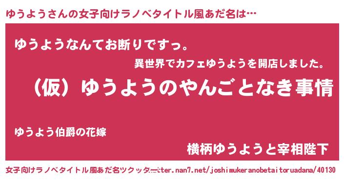 | 男性向けラノベタイトル風あだ名 | 『ゆうようの憂鬱』 |