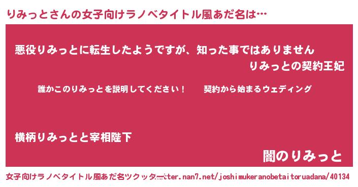 | 意味不明あだ名 | 『ペロリンりみっと』『自称りみっと』 |