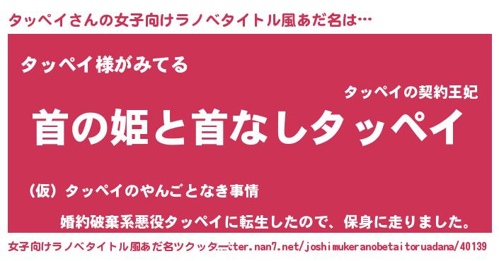 | 男性向けラノベタイトル風あだ名 | 『はたらくタッペイさま!』 |