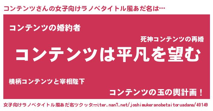 | 胡散臭い通販商品みたいなあだ名 | 『信頼と実績のサプリメント…その名も「コンテンツ」』 |