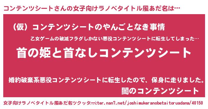 | 男性向けラノベタイトル風あだ名 | 『はたらくコンテンツシートさま!』 |