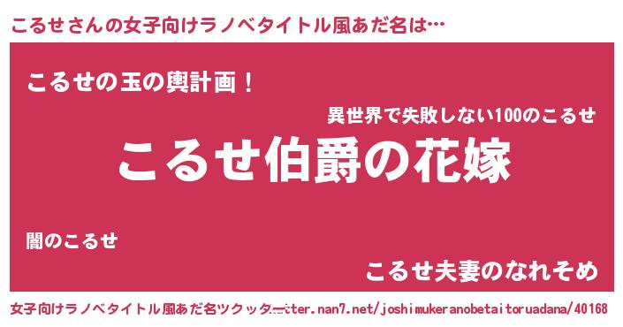 | 意味不明あだ名 | 『こるせフォーエバー』『永久保存こるせ』 |