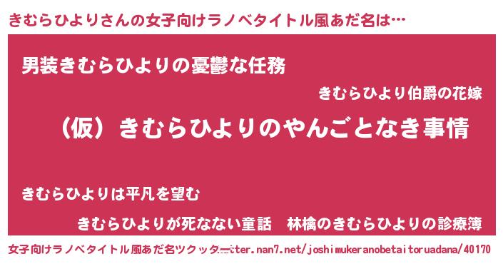 | 胡散臭い通販商品みたいなあだ名 | 『必ず成功する霊験あらたかなお札…その名も「きむらひより」』 |