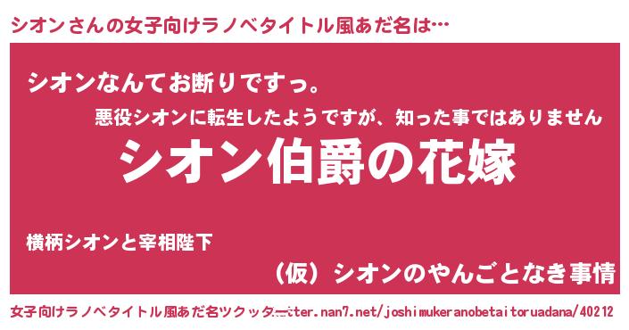 | 意味不明あだ名 | 『シオンフォーエバー』『自称シオン』 |