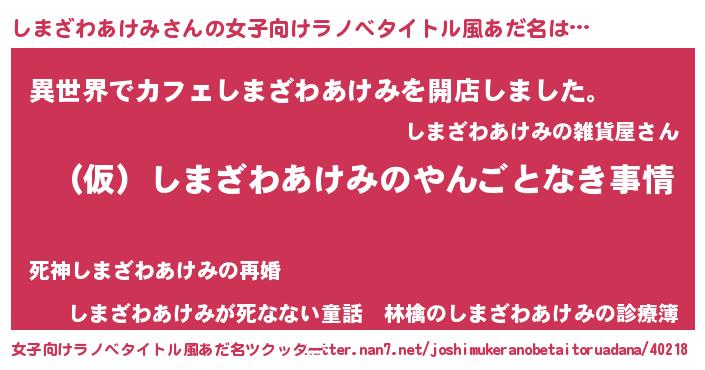 | 男性向けラノベタイトル風あだ名 | 『しまざわあけみの憂鬱』 |