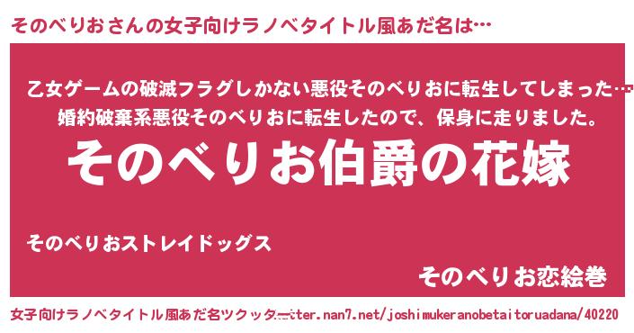 | ファンタジー風あだ名 | 『エターナルソノベリオー』『ゼソノトゥ』 |