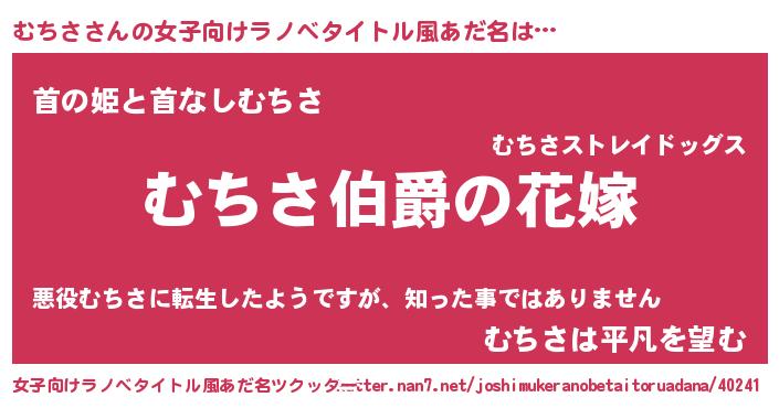| 胡散臭い通販商品みたいなあだ名 | 『世界が平和になる高級そうな絵画…その名も「むちさ」』 |