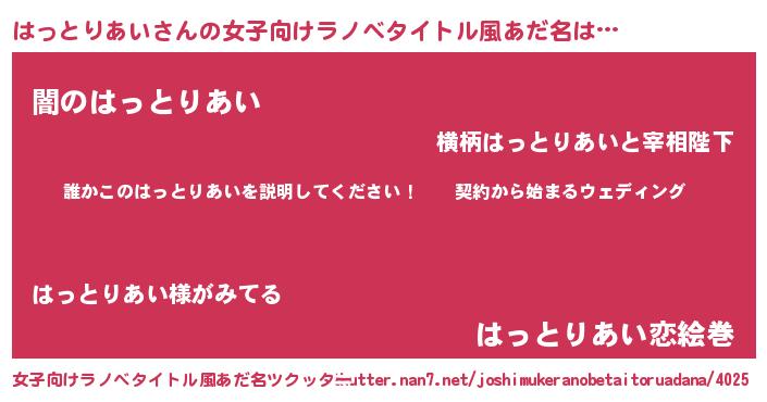 | 男性向けラノベタイトル風あだ名 | 『ハットリアイアートオンライン』 |
