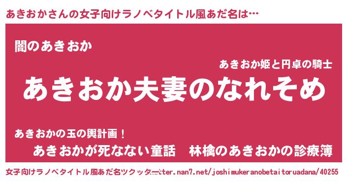| ヒーロー風カッコイイあだ名 | 『正義の使者あきおか』『仮面アキダー』 |