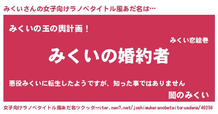 | ヒーロー風カッコイイあだ名 | 『ウルトラみくいマン』『仮面ミクダー』 |