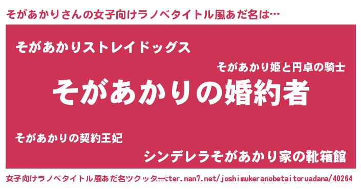 | ファンタジー風あだ名 | 『エターナルソガアカリー』『ゼソガトゥ』 |