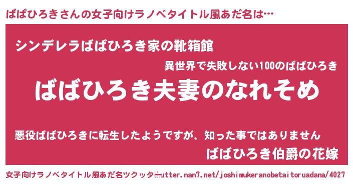 | 男性向けラノベタイトル風あだ名 | 『おまえをオタクにしてやるから、俺をばばひろきにしてくれ! 』 |