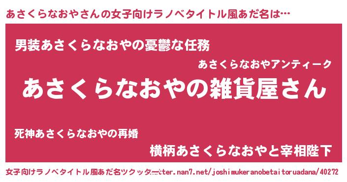 | 男性向けラノベタイトル風あだ名 | 『やはりあさくらなおやの青春ラブコメはまちがっている 』 |
