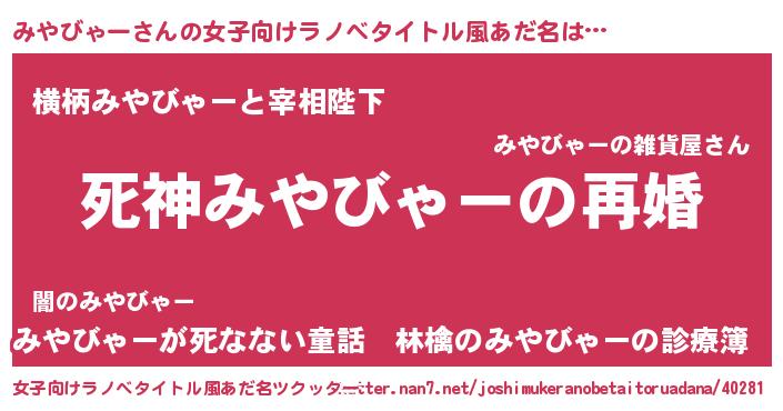 | 男性向けラノベタイトル風あだ名 | 『ノーゲーム・ノーミヤビャー』 |
