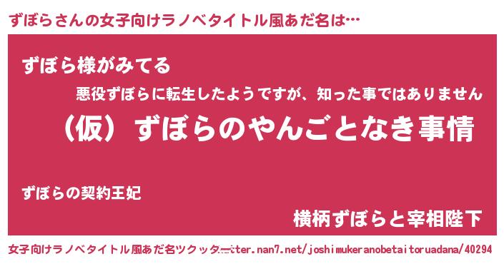 | 男性向けラノベタイトル風あだ名 | 『ずぼらの憂鬱』 |