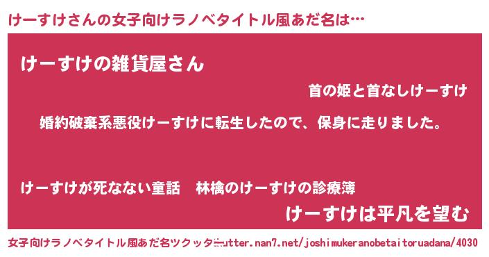 | 胡散臭い通販商品みたいなあだ名 | 『幸せが訪れる高級そうな絵画…その名も「けーすけ」』 |