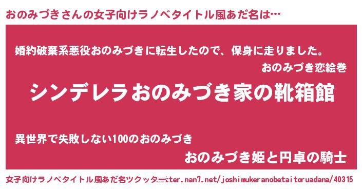 | 胡散臭い通販商品みたいなあだ名 | 『必ず成功するブレスレット…その名も「おのみづき」』 |