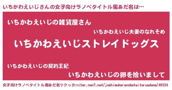 | 男性向けラノベタイトル風あだ名 | 『Re:いちかわえいじから始める異世界生活』 |