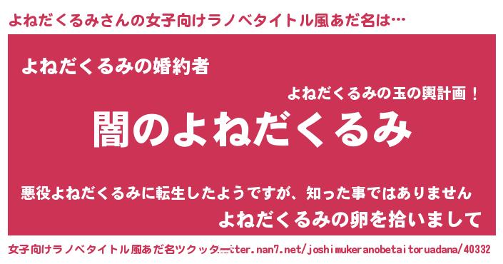 | 男性向けラノベタイトル風あだ名 | 『Re:よねだくるみから始める異世界生活』 |