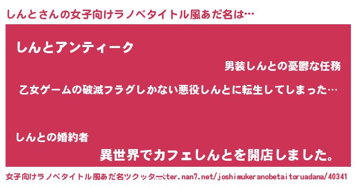 | ヘコむあだ名 | 『しんと(震え声)』『豆乳』 |