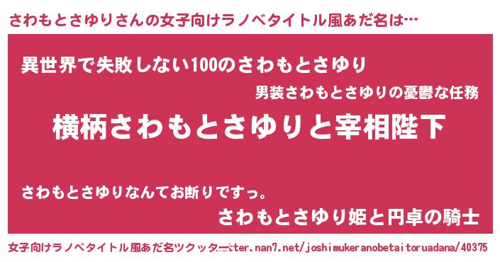 | 男性向けラノベタイトル風あだ名 | 『さわもとさゆりに滅ぼされるだけの簡単なお仕事です』 |