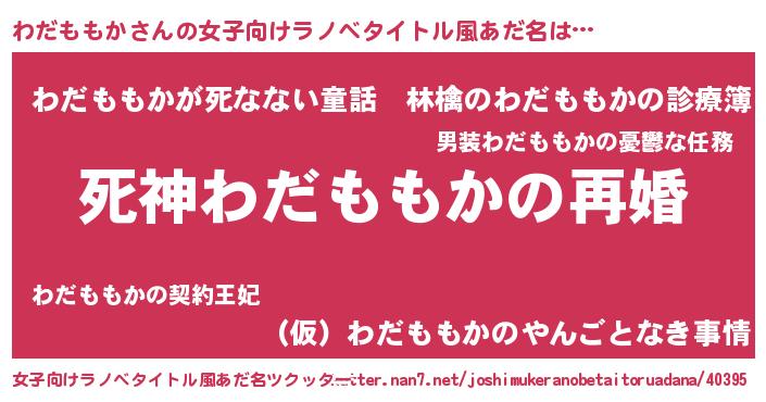 | 男性向けラノベタイトル風あだ名 | 『ノーゲーム・ノーワダモモカ』 |