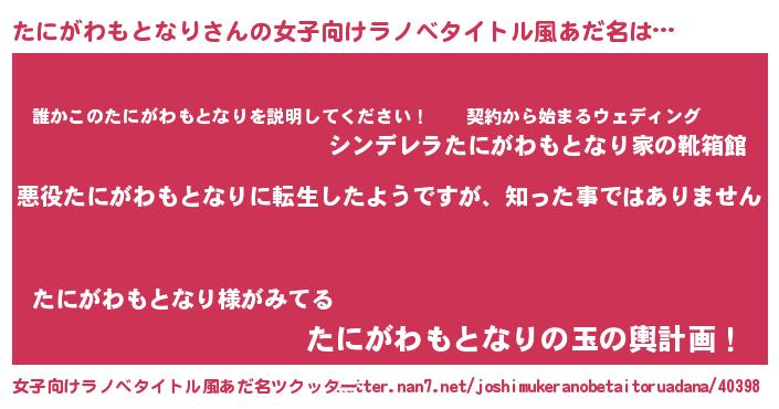 | 意味不明あだ名 | 『住所不定無職たにがわもとなり(91歳)』 |