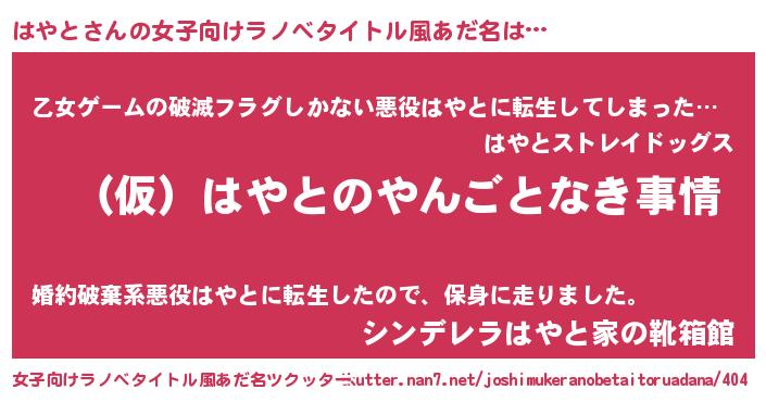 | 胡散臭い通販商品みたいなあだ名 | 『必ず成功する霊験あらたかなお札…その名も「はやと」』 |