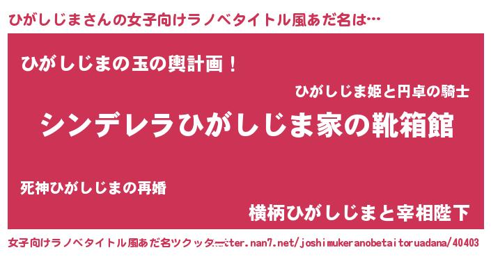 | 胡散臭い通販商品みたいなあだ名 | 『必ず成功する霊験あらたかなお札…その名も「ひがしじま」』 |