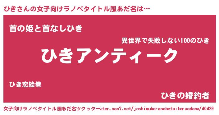 | 胡散臭い通販商品みたいなあだ名 | 『テレビで話題の高麗人参…その名も「ひき」』 |
