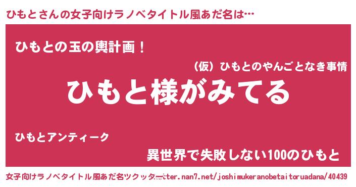 | 意味不明あだ名 | 『とにかく怪しいひもと』『自称ひもと』 |