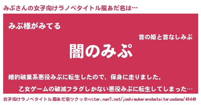 | 意味不明あだ名 | 『自称みぷ』『とにかく怪しいみぷ』 |
