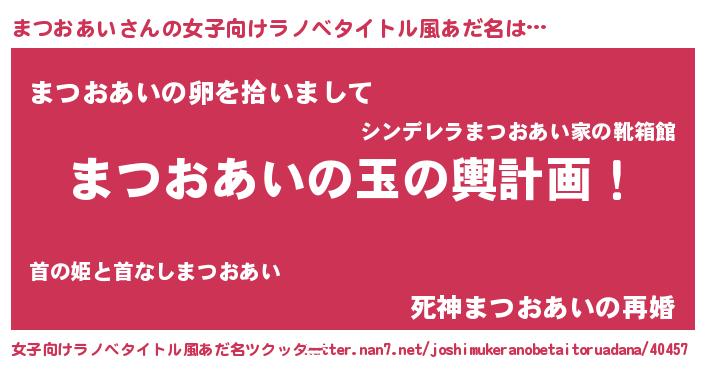 | 胡散臭い通販商品みたいなあだ名 | 『全米が絶賛したサプリメント…その名も「まつおあい」』 |