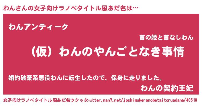 | 胡散臭い通販商品みたいなあだ名 | 『必ず成功する水晶球…その名も「わん」』 |