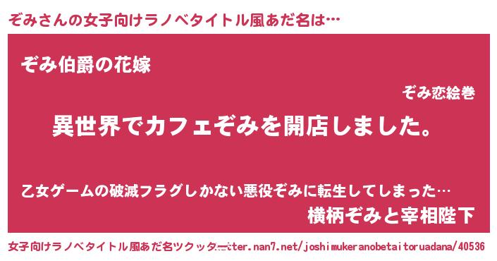 | 男性向けラノベタイトル風あだ名 | 『誰もが恐れるあのぞみが、ぼくの専属メイドになるようです。』 |