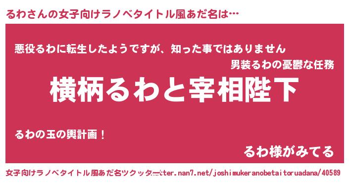 | 男性向けラノベタイトル風あだ名 | 『るわに滅ぼされるだけの簡単なお仕事です』 |
