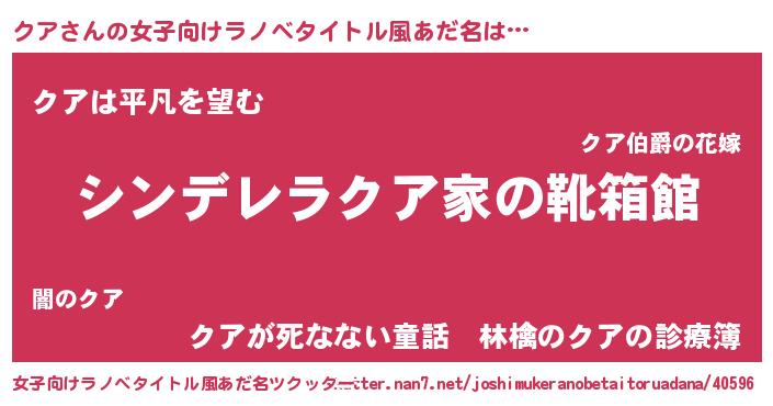 | 男性向けラノベタイトル風あだ名 | 『緋弾のクア』『魔弾の王とクア』 |