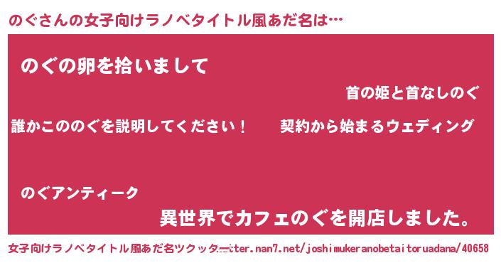 | 男性向けラノベタイトル風あだ名 | 『ノグアートオンライン』 |