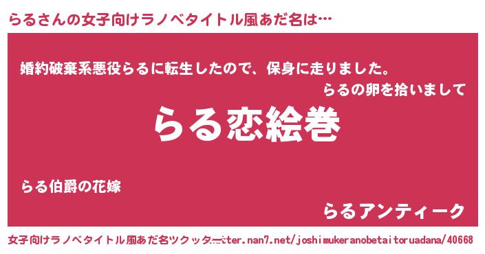| 胡散臭い通販商品みたいなあだ名 | 『お金では代えられない隕石のかけら…その名も「らる」』 |