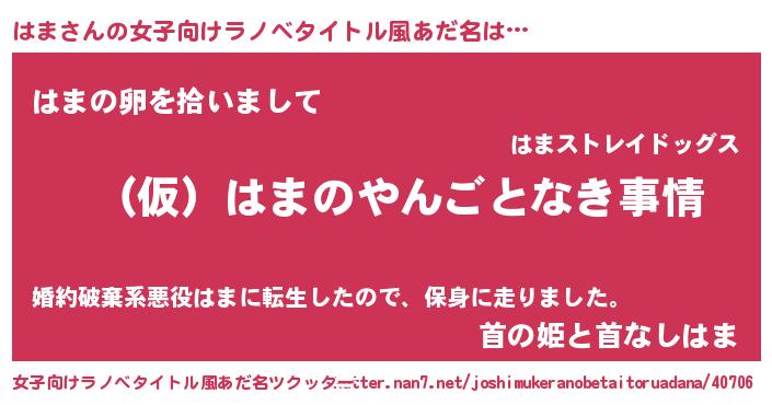 | 胡散臭い通販商品みたいなあだ名 | 『必ず成功するブレスレット…その名も「はま」』 |