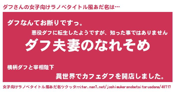 | ヘコむあだ名 | 『ダフ(苦笑)』『豆乳』『ダフもー』 |