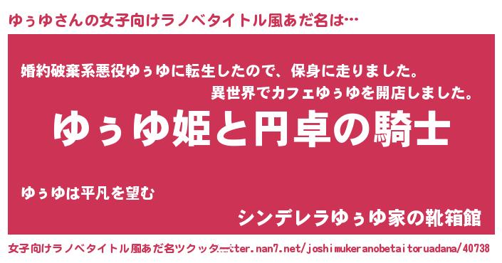 | 男性向けラノベタイトル風あだ名 | 『ユゥユアートオンライン』 |
