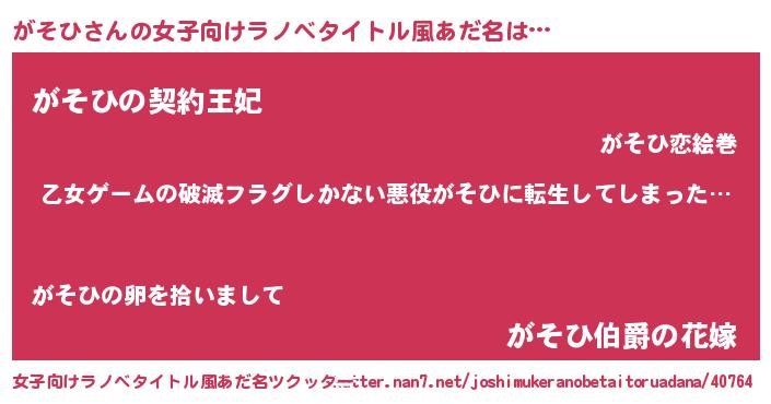 | 男性向けラノベタイトル風あだ名 | 『魔弾の王とがそひ』 |