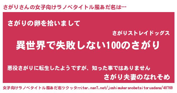 | 男性向けラノベタイトル風あだ名 | 『さがりという概念が存在しない退屈な世界 』 |