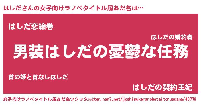 | ヒーロー風カッコイイあだ名 | 『慈愛の使者はしだ』『ネオハシダ』 |
